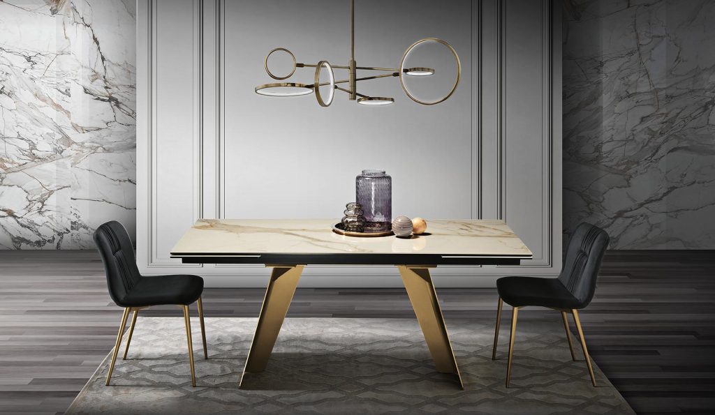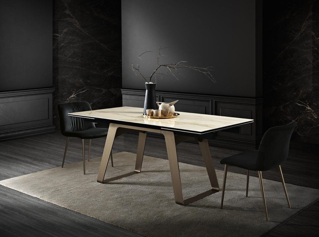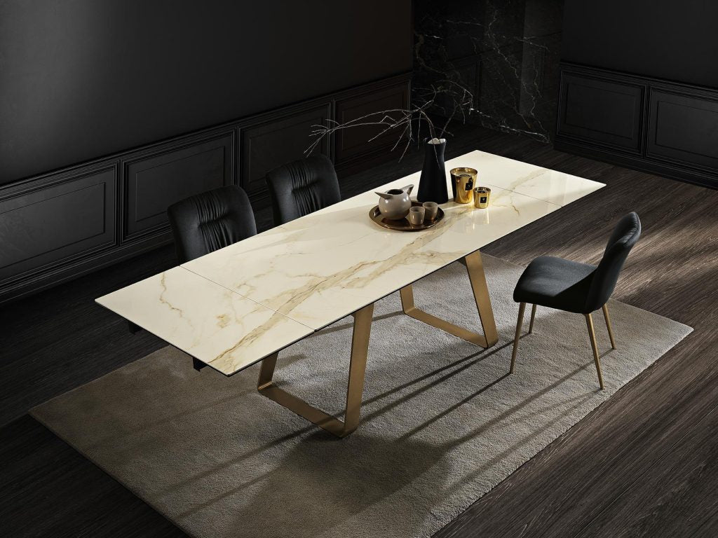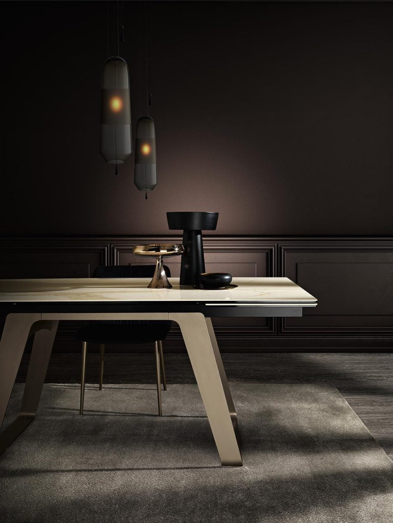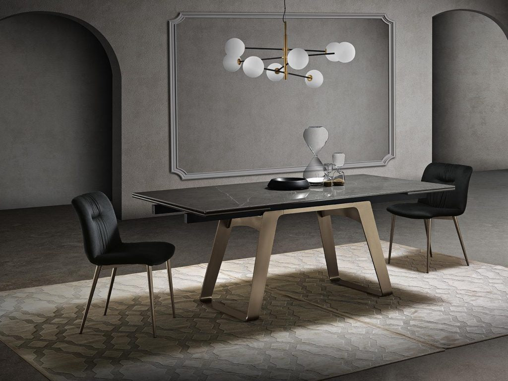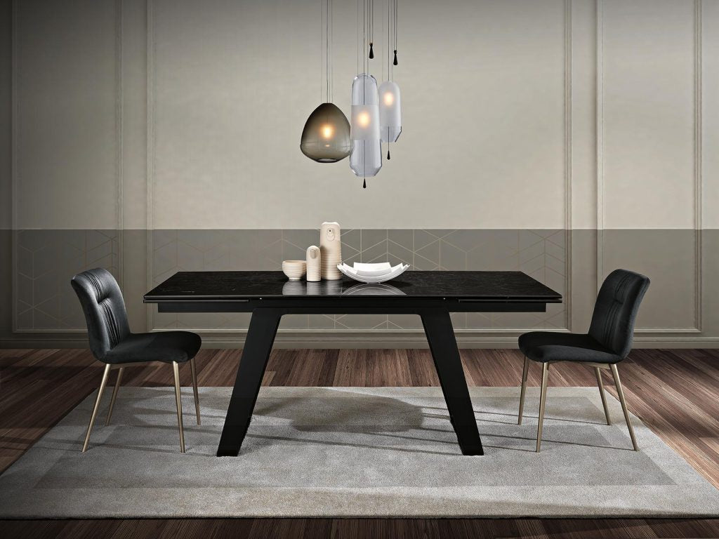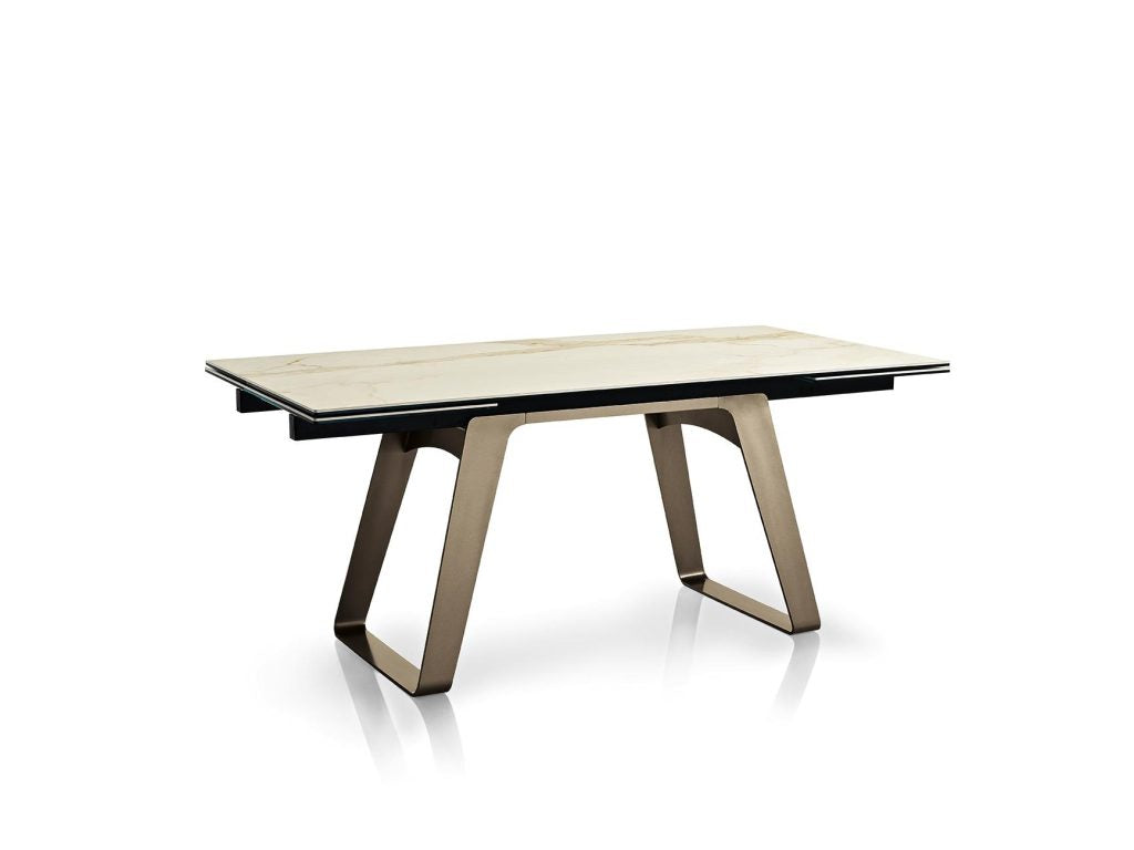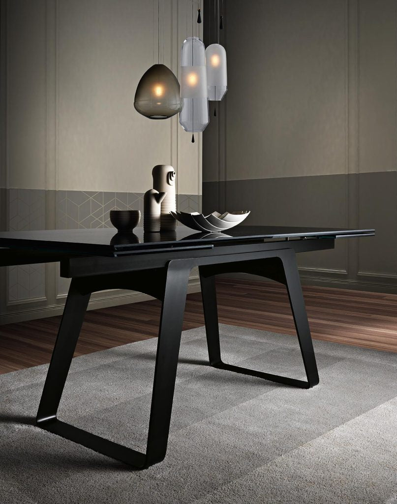 Tavolo allungabile con gambe in metallo e meccanismo di scorrimento che consente di estendere il piano fino alla lunghezza desiderata rendendolo cosi adatto a case o uffici. Inoltre la forma arrotondata e morbida delle gambe entra facilmente in sintonia con ambienti moderni.