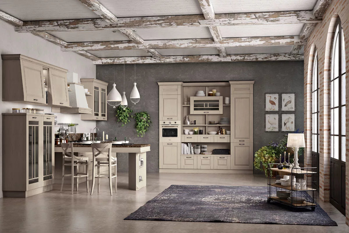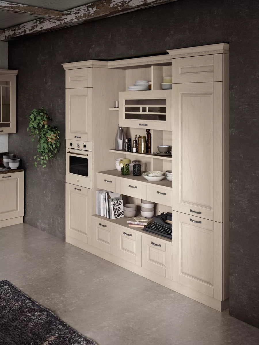La versione Bilbao 01 è una cucina classica accogliente, calda e confortevole. Tutto il comfort e la praticità della composizione con colonne incassate, disponendo ogni elemento razionalmente, dalle basi alle vetrine, dai pensili alle colonne: così quello di cui si ha bisogno è sempre a portata di mano, per rendere più semplice tagliare, tritare, lavare, impastare e cucinare. Una composizione in cui spicca il bancone snack, alternativa di tendenza al tavolo tradizionale, e la rivisitazione della credenza che ingloba anche le colonne dove è incassato il forno. Un ambiente da condividere con i propri cari e da progettare con cura, perché rappresenta chi lo abita, per non dimenticare che ancora oggi la cucina è il cuore della casa.