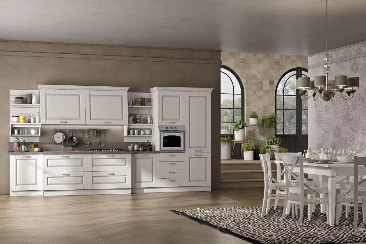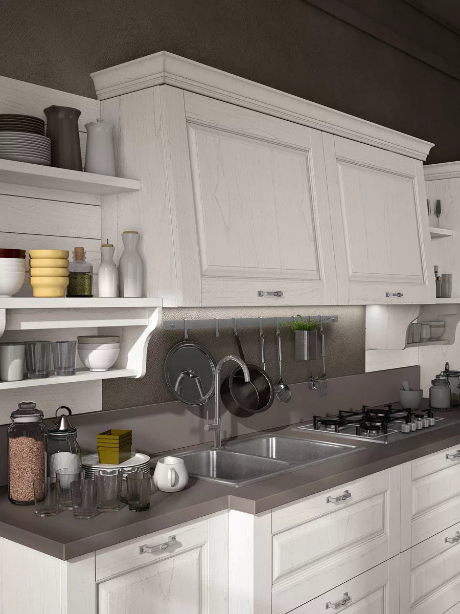 Bilbao 04 è la cucina classica per eccellenza: un rifugio perfetto dove trascorrere il tempo dopo le giornate più intense, luogo che sa trasmettere tranquillità e pace, in cui sembra quasi che il tempo si sia fermato. Un mood che trasmette a chi lo vive un intimo senso di calore e di ospitalità. Atmosfera accogliente, che il lifestyle di Bilbao sottolinea perfettamente con i suoi arredi, sia nelle forme che nelle finiture. Un classico da vivere a tutto tondo. In Bilbao l’estetica non prescinde mai dalla funzionalità: i pensili, le basi e le colonne dedicate al contenimento privilegiano l’anta con bozza e una finitura che dà risalto alle venature. La composizione nella sua linearità interpreta una cucina che semplifica ogni operazione. Il risultato è un’eleganza discreta che si adatta in qualsiasi ambiente.