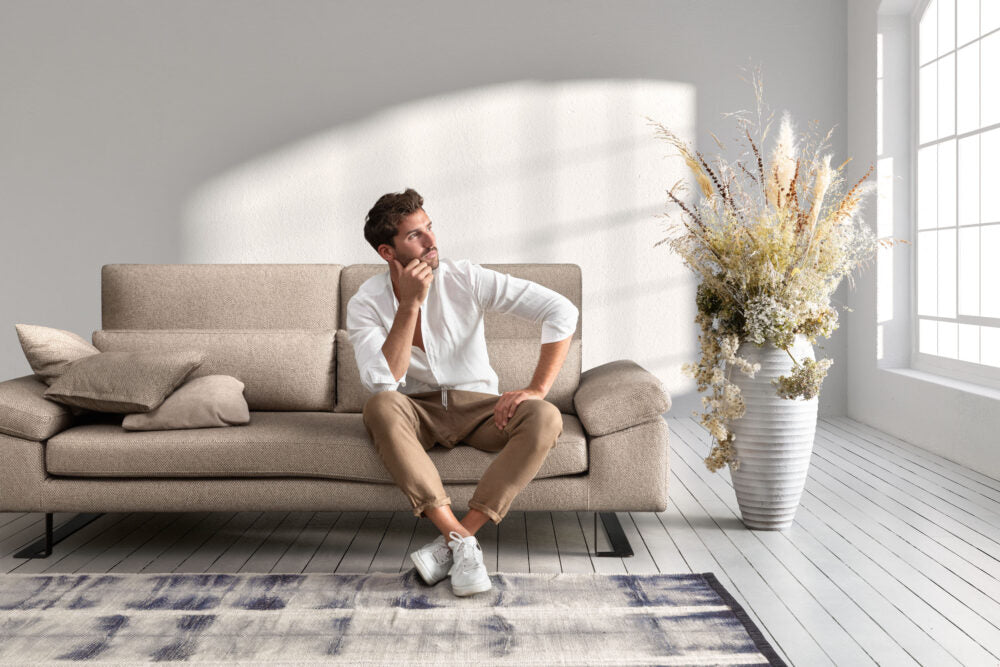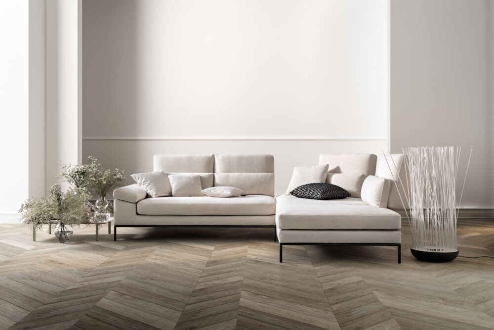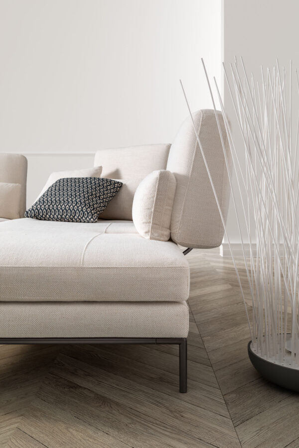 Divano in cui forme tradizionali incontrano comfort e stile. Le innovative schiene con comodo appoggio lombare e il cuscino bracciolo regolabile soddisfano ogni esigenza di relax; il movimento traslante della schiena permette di aumentare la profondità di seduta per un comfort assoluto.