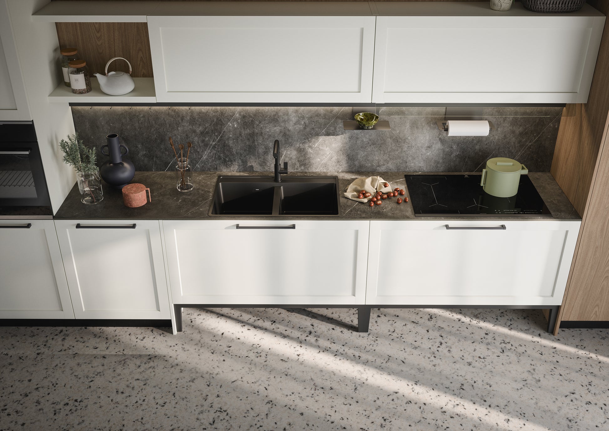 CLIO 05 - Cucina lineare con ante a telaio bianche