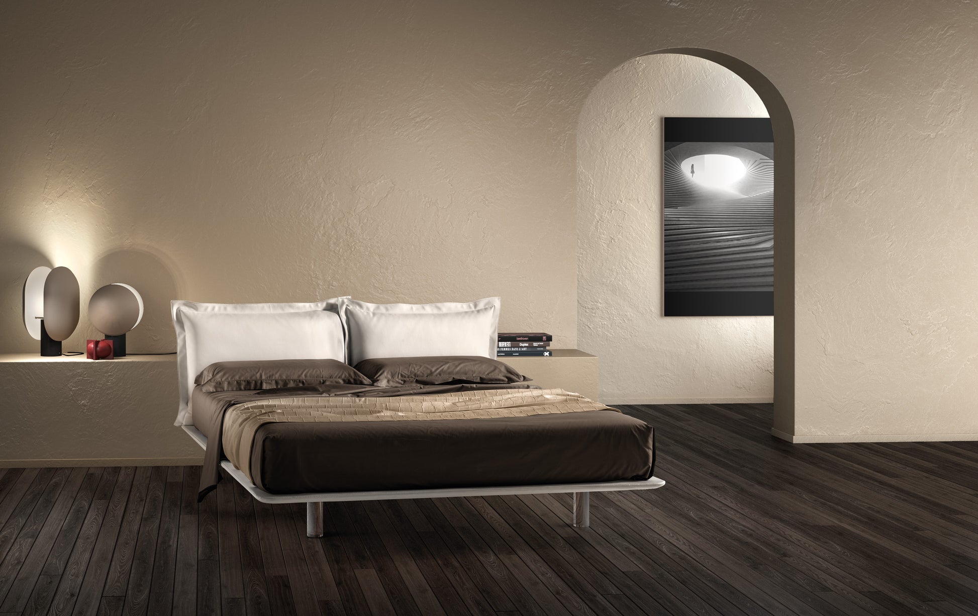 - Struttura con piano ortopedico in multistrato imbottito supportato da una struttura metallica verniciata con polveri epossidiche color grigio.