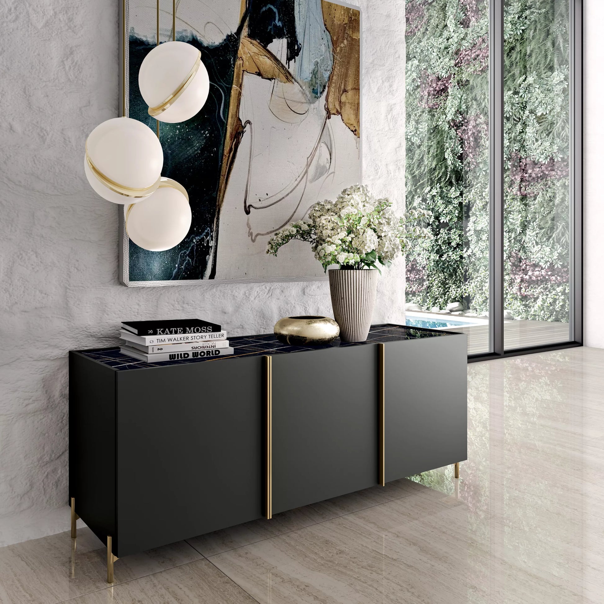 Madia GREY Lavagna – Maniglie e piedi Oro – Vetro marmo Sahara Noir