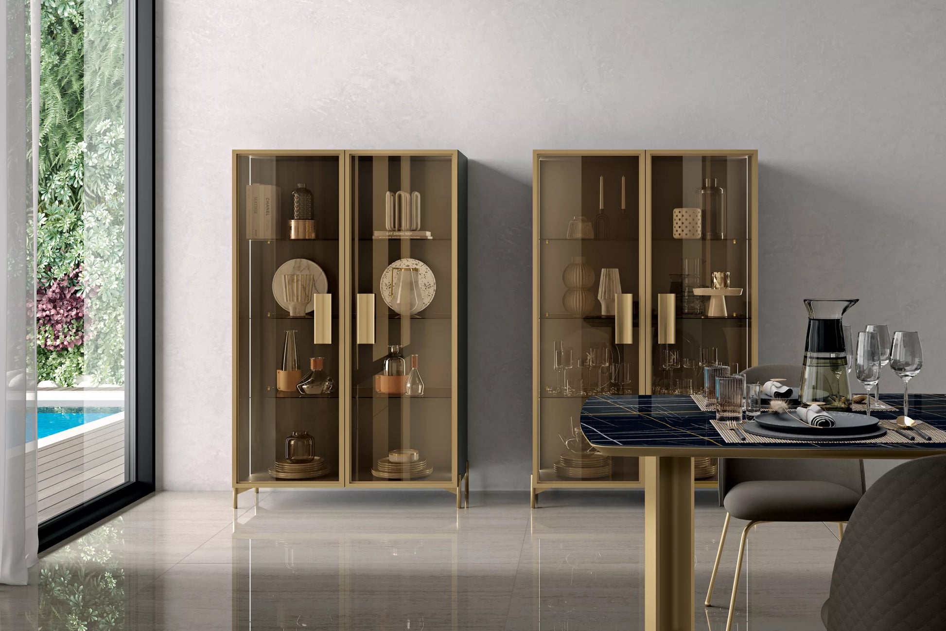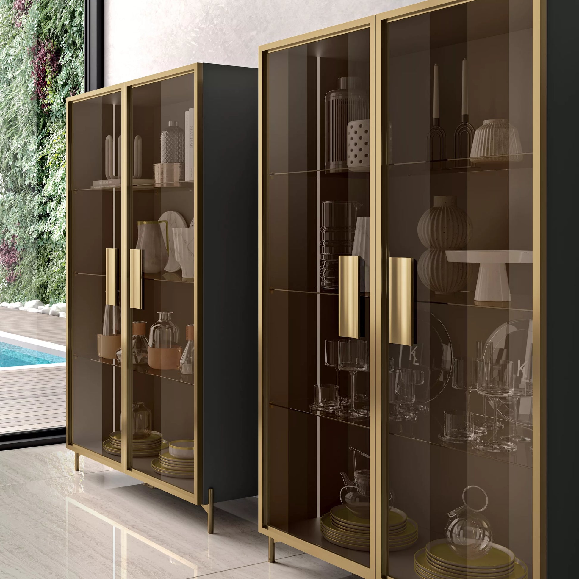 Vetrina GREY Lavagna – Telaio anta , piedi e maniglie Oro – Vetro Bronzo – Profili con luce LED sui fianchi