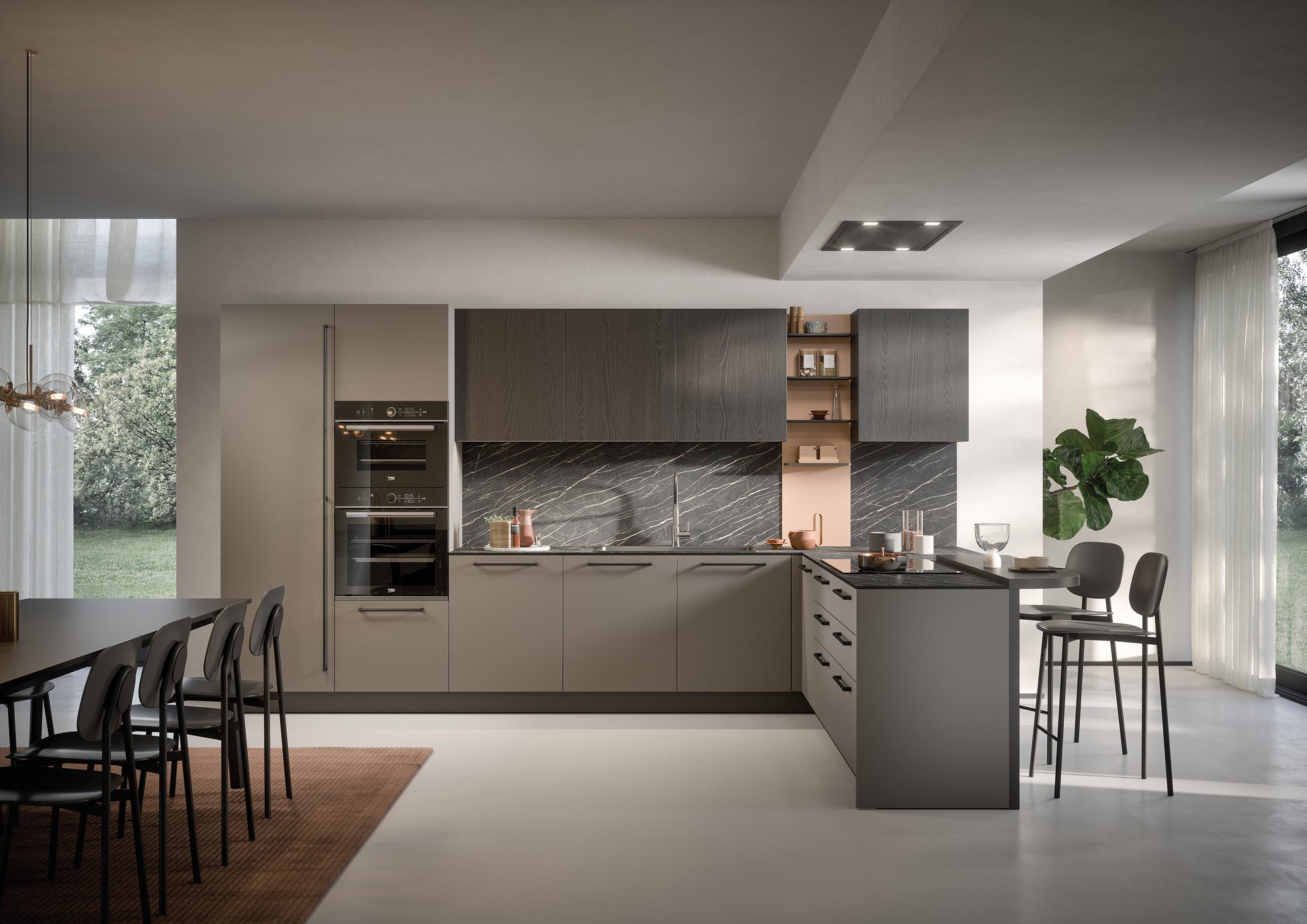 DOMINO 10 - Cucina moderna con penisola e piano snack