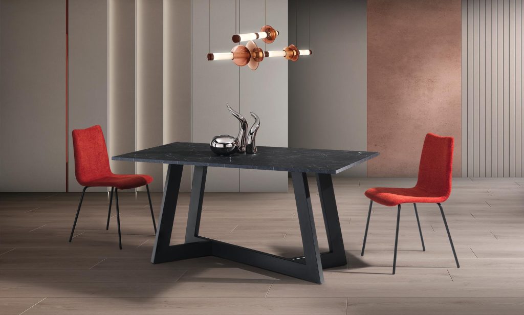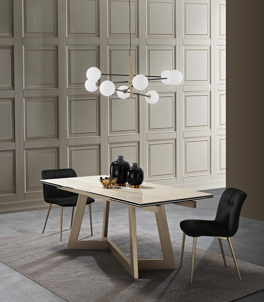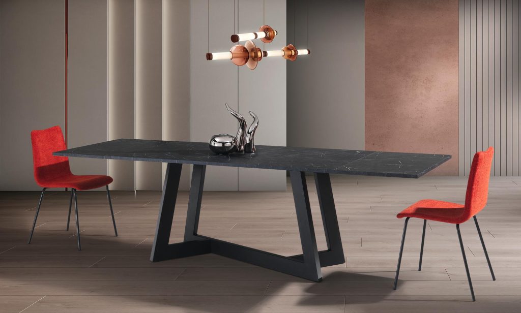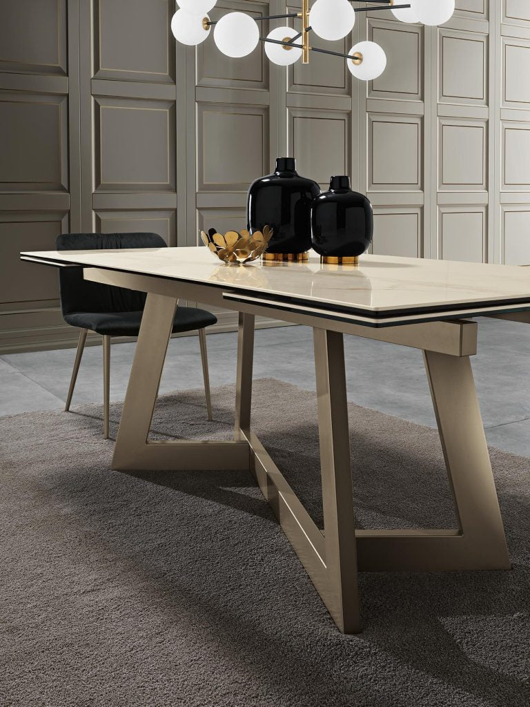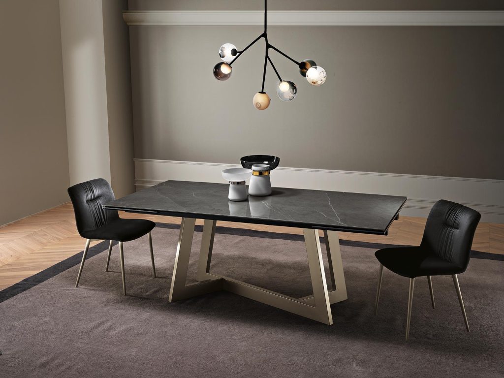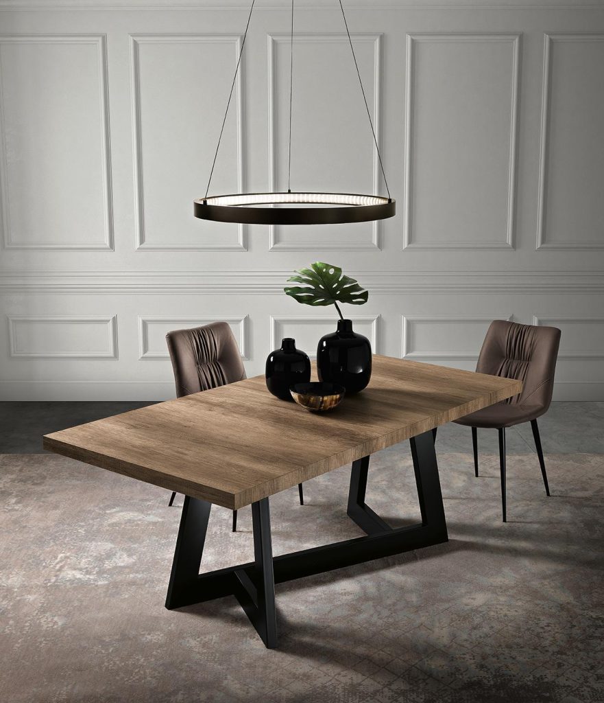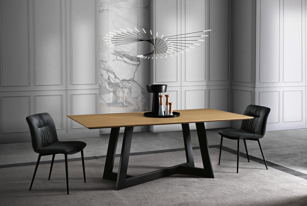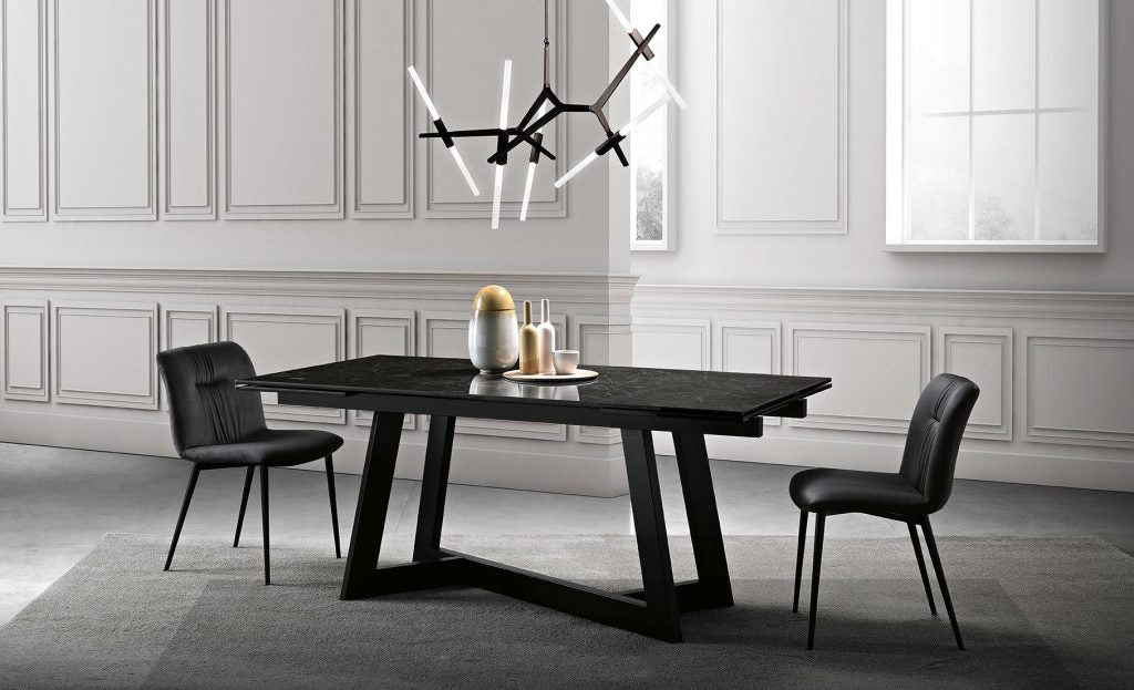 L’aspetto architettonico delle forme è l’elemento peculiare del tavolo Eddy il cui disegno del piano di appoggio è in perfetta armonia con quello geometrico del sostegno. È realizzato in diverse dimensioni e liberamente interpretato combinando finiture in varie essenze, vetro e vetroceramica sia opaca che luci-da. Così eclettico da poter essere collocato in ambienti a diversa destinazione d’uso.