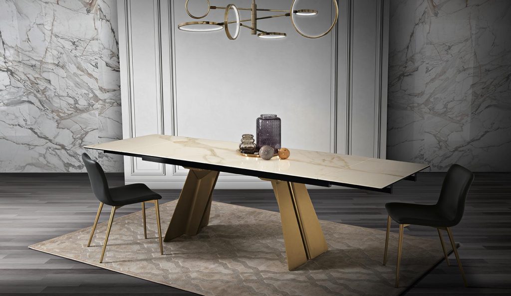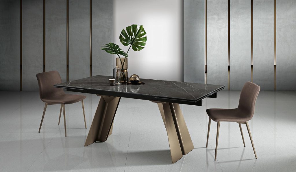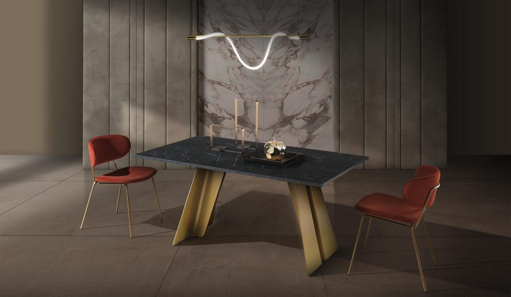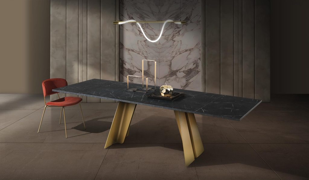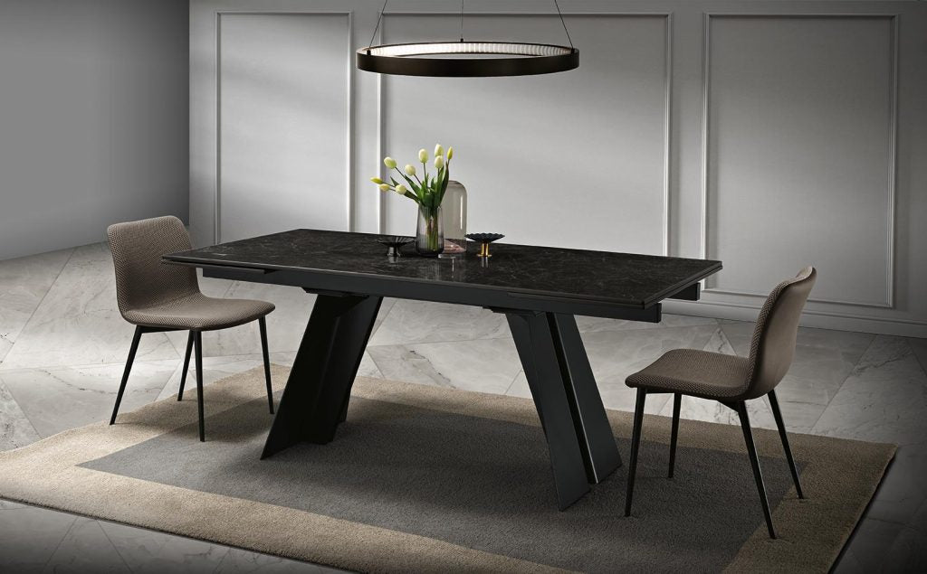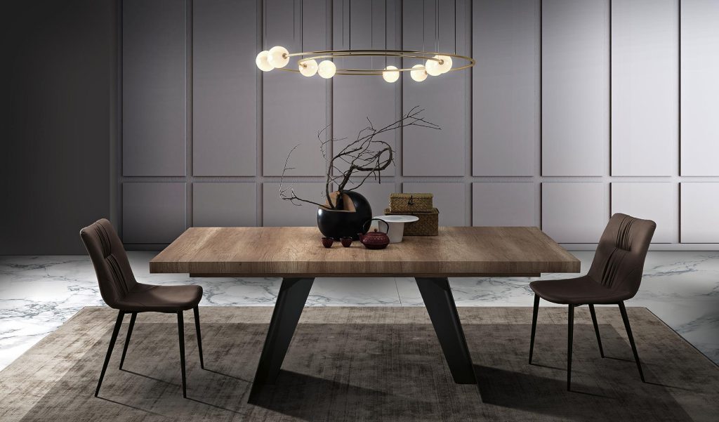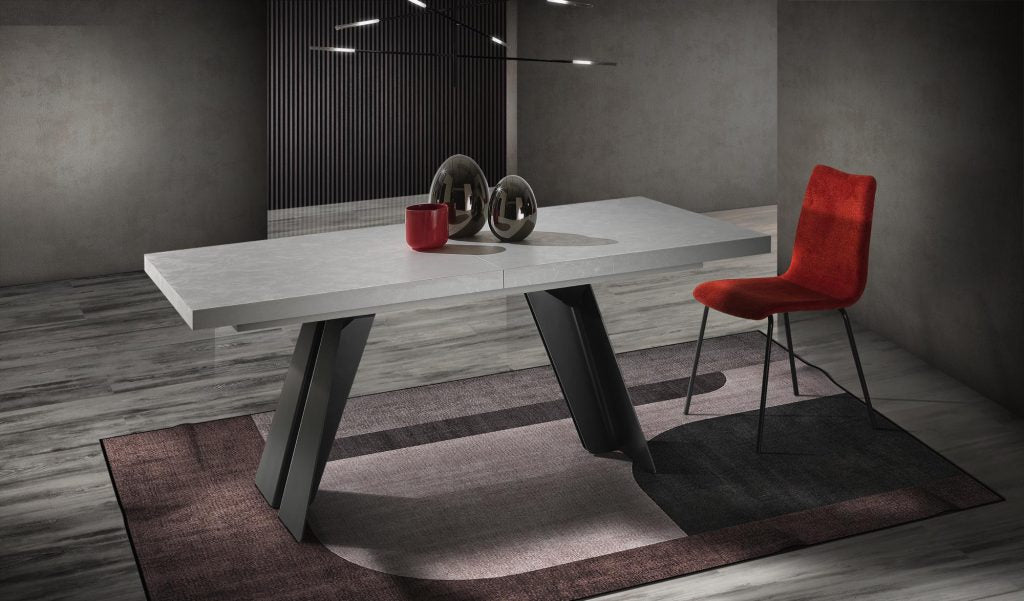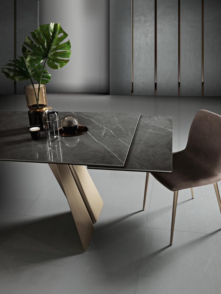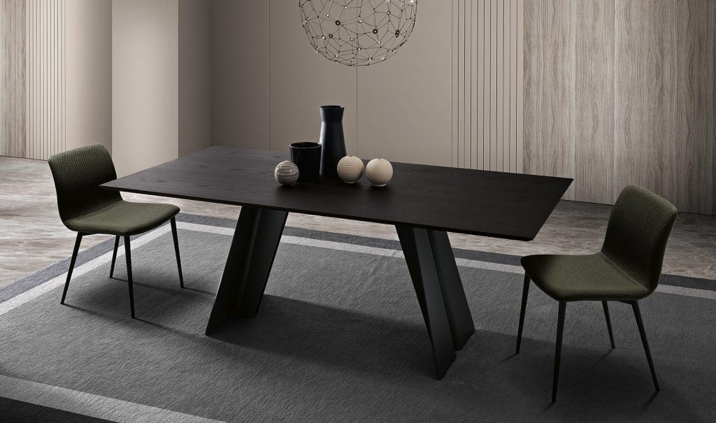 Scultoreo ed elegante, il tavolo Ethan si compone di due elementi strutturali in metallo verniciato che sostengono piani di diverse dimen-sioni. Ethan esprime tutta la propria eleganza e plasticità attraverso i tagli e le angolature delle gambe.