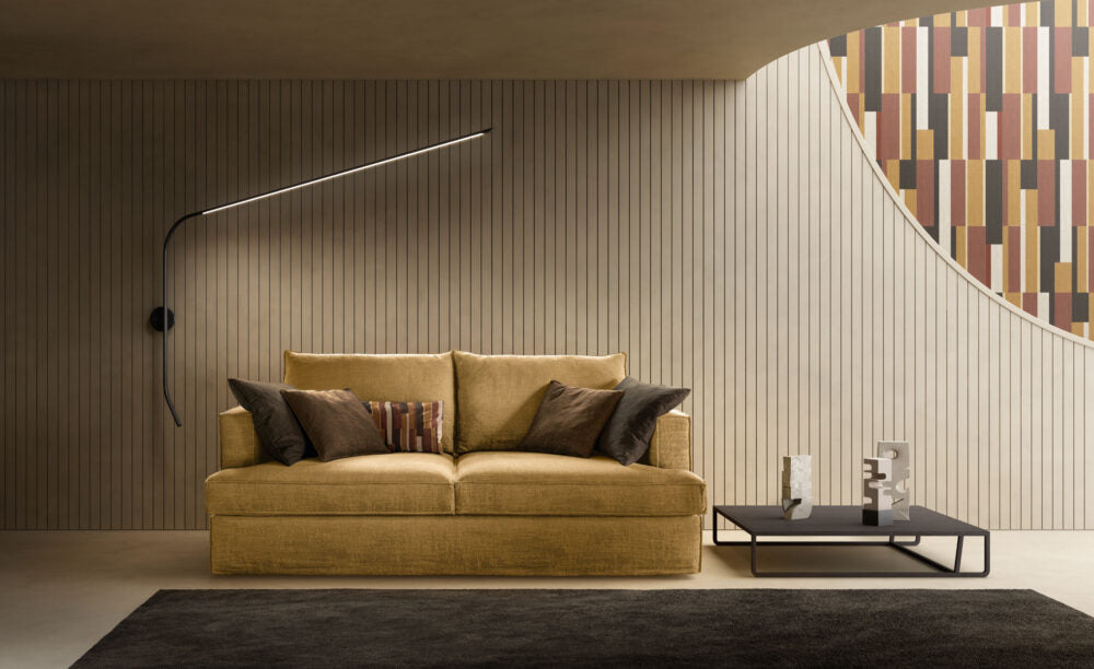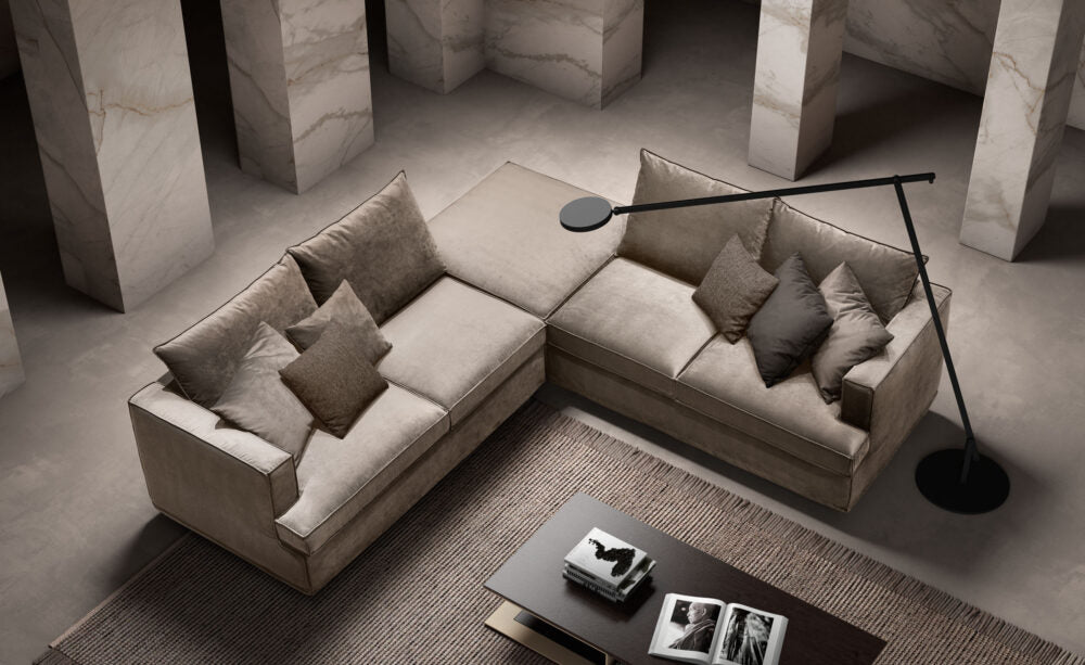 Divano di elevata qualità ed eccezionale comfort adatto ad arricchire con personalità ed originalità la zona living, per vivere il quotidiano senza schemi e convenzioni.