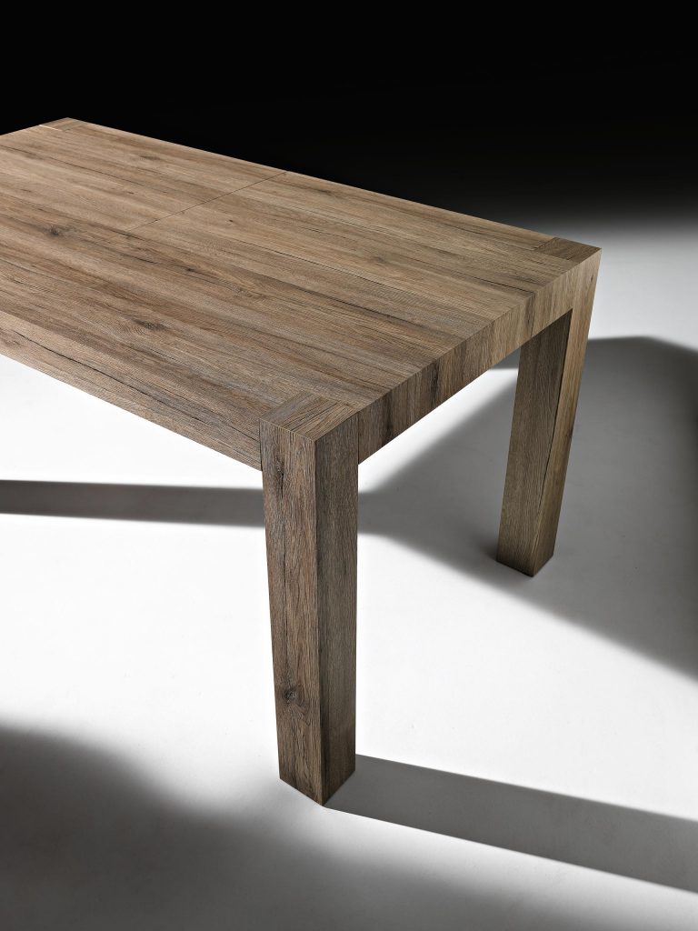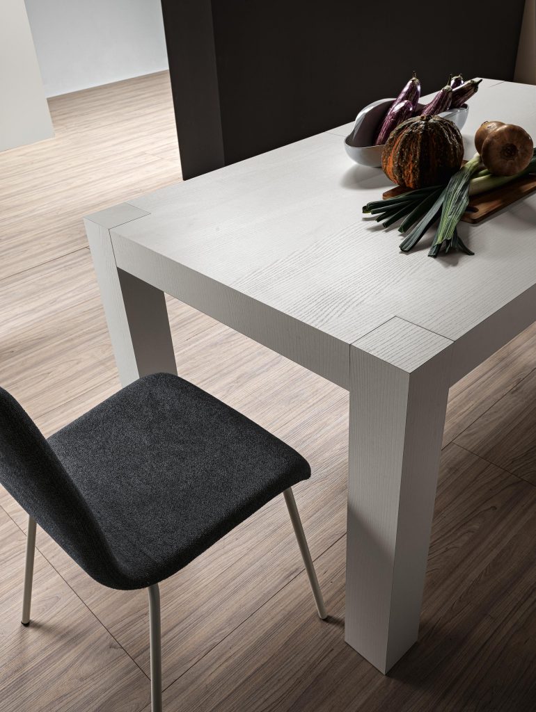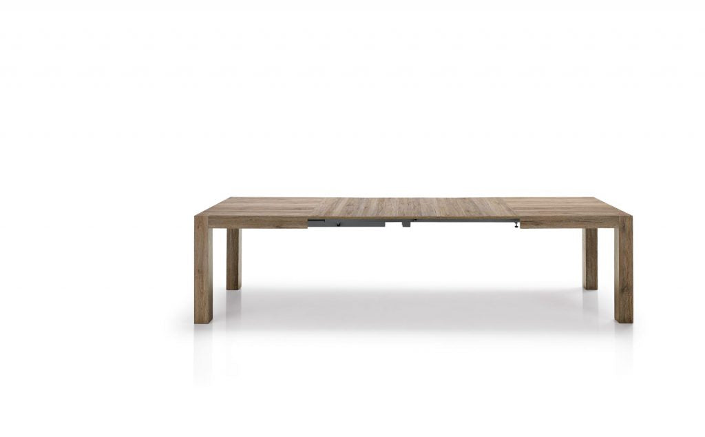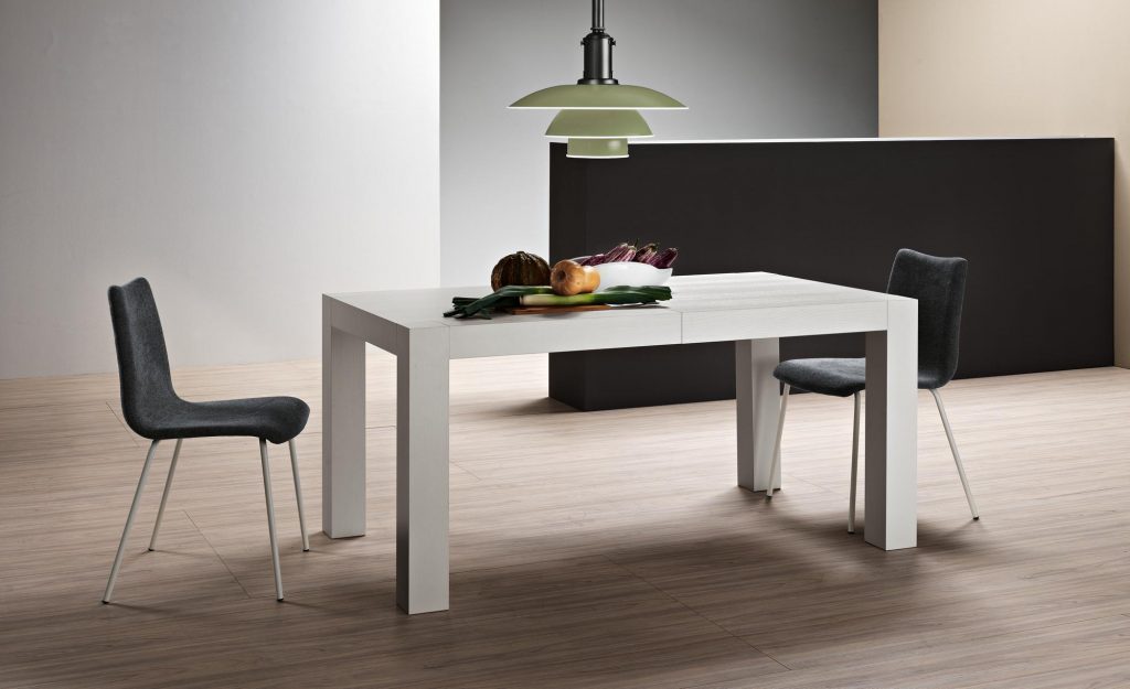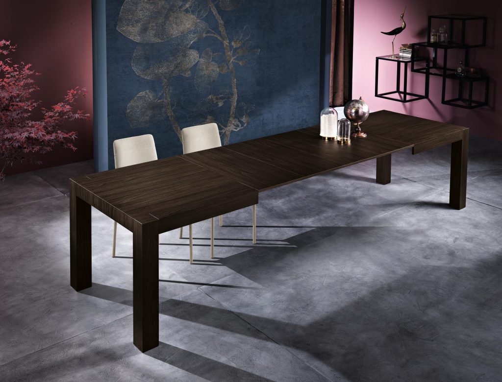 infinito. Un pratico e veloce sistema di allungamento su binari scorrevoli ne permettono un uso utilissimo mentre, chiuso, è un tavolo graficamente essenziale,