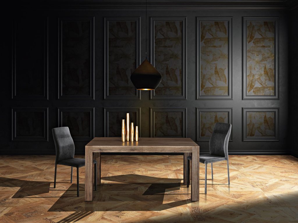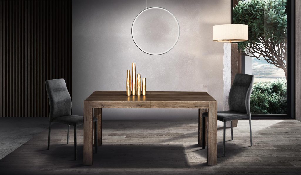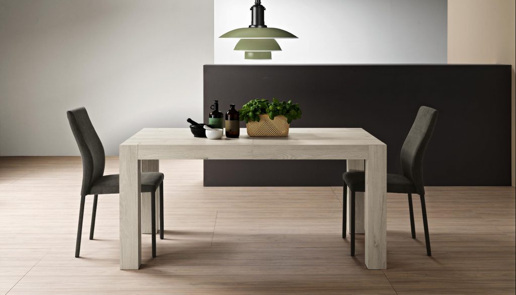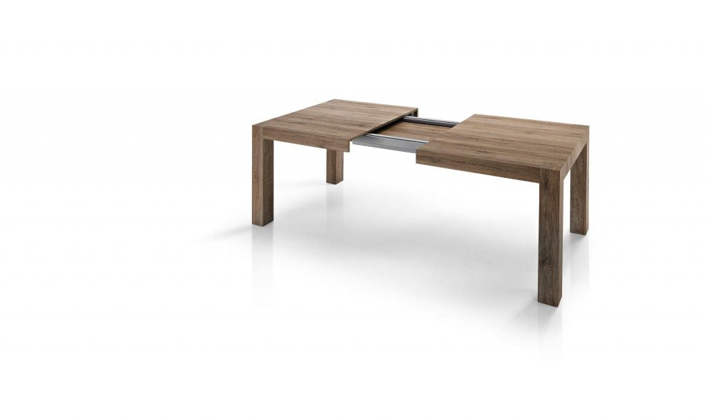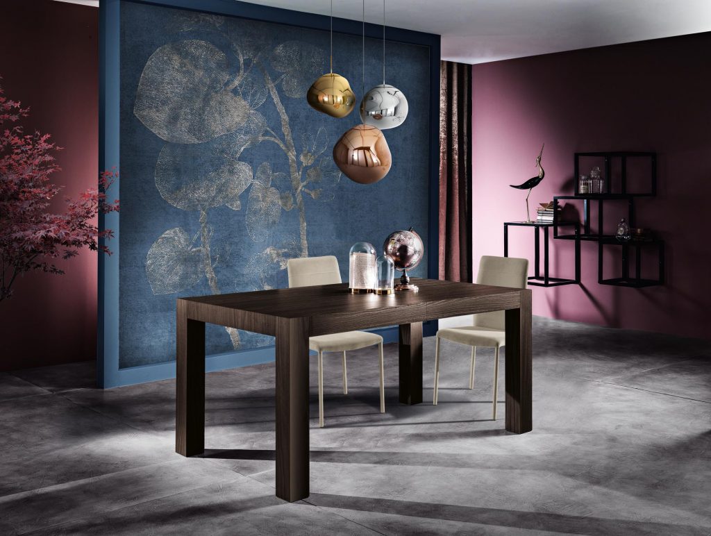 infinito. Un pratico e veloce sistema di allungamento su binari scorrevoli ne permettono un uso utilissimo mentre, chiuso, è un tavolo graficamente essenziale,