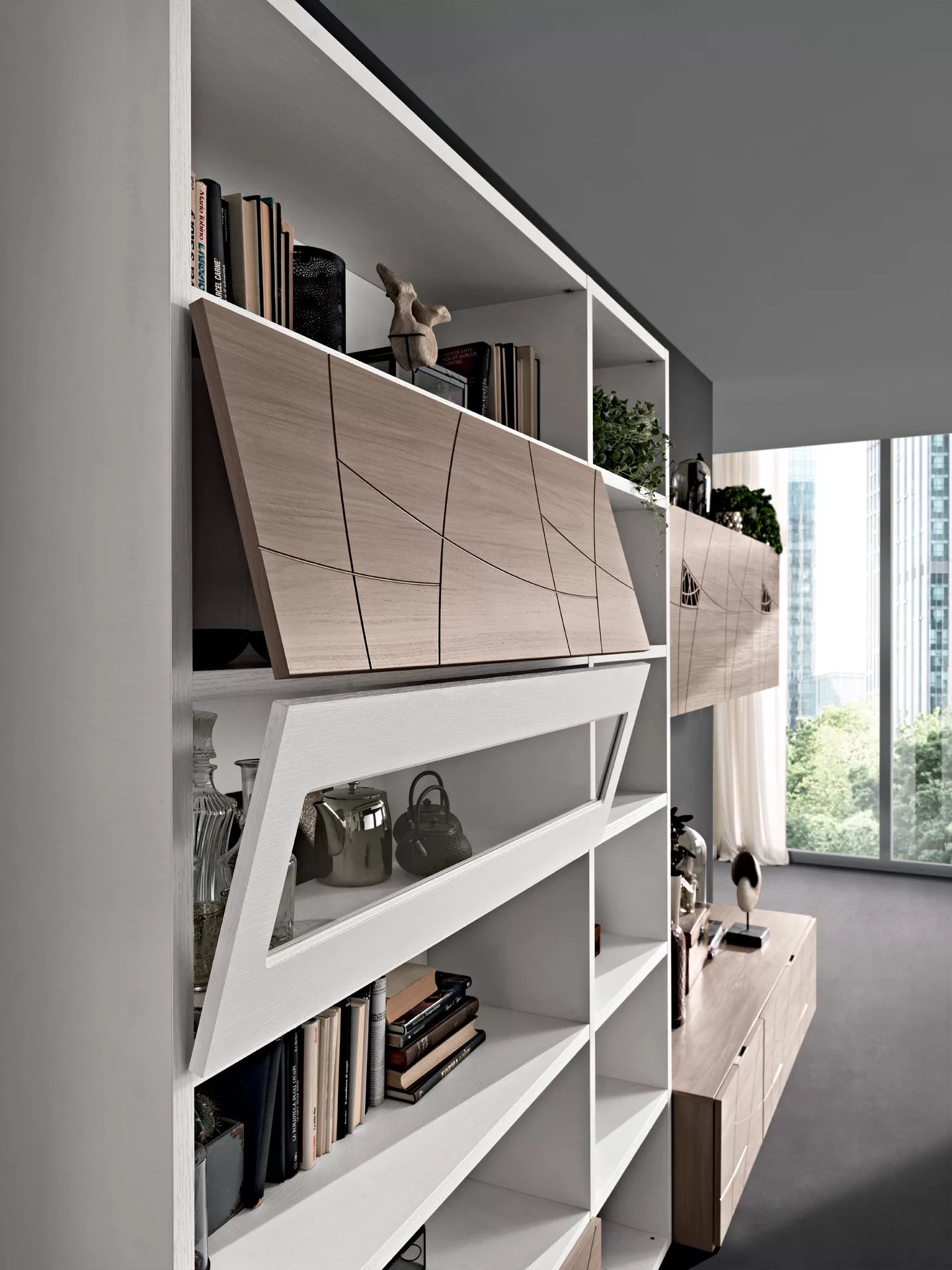 LA CLASSICA PARETE IN NOCE NATURA E FRASSINO BIANCO CHE STA BENE OVUNQUE. LA MADIA CON FIANCHI CURVI IN NOCE NATURA CHE SI ABBINA AL SOGGIORNO PER AVERE UN AMBIENTE UNICO.