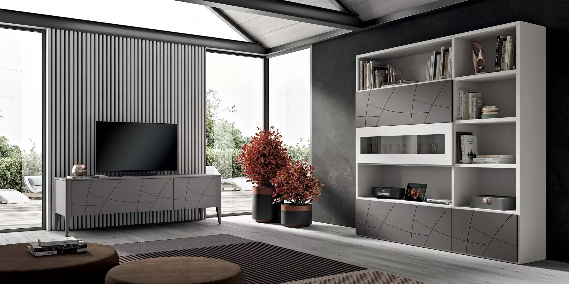 UN AMBIENTE MOLTO CONTEMPORANEO CON I COLORI FRASSINO BIANCO ED IL NUOVO GRIGIO QUARZO