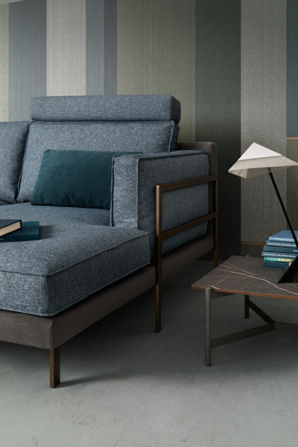 Divano dalle linee essenziali e moderne, le diverse possibilità compositive permettono un facile inserimento nella zona living.Elemento caratterizzante il modello è il piede Madison che contiene il bracciolo e ne definisce i volumi.