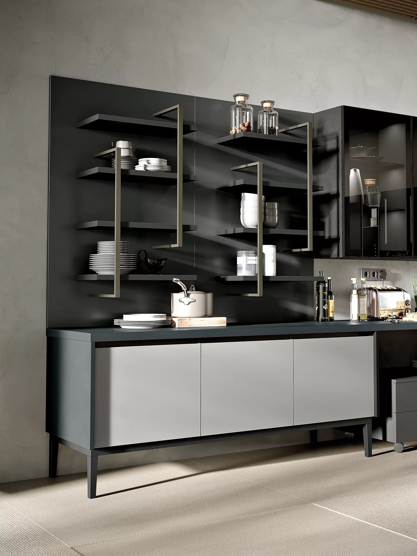 Lo spazio che aggiunge spazio Un design innovativo che arreda la tua casa e che va oltre la sola funzionalità. Con Merano lo spazio aggiunge altro spazio: l’ampia isola ti permette di tenere il tavolo da lavoro pulito e in ordine mentre consulti una ricetta o fai una video-chiamata, con i pratici vani nei quali trovare sempre quello che cerchi.
