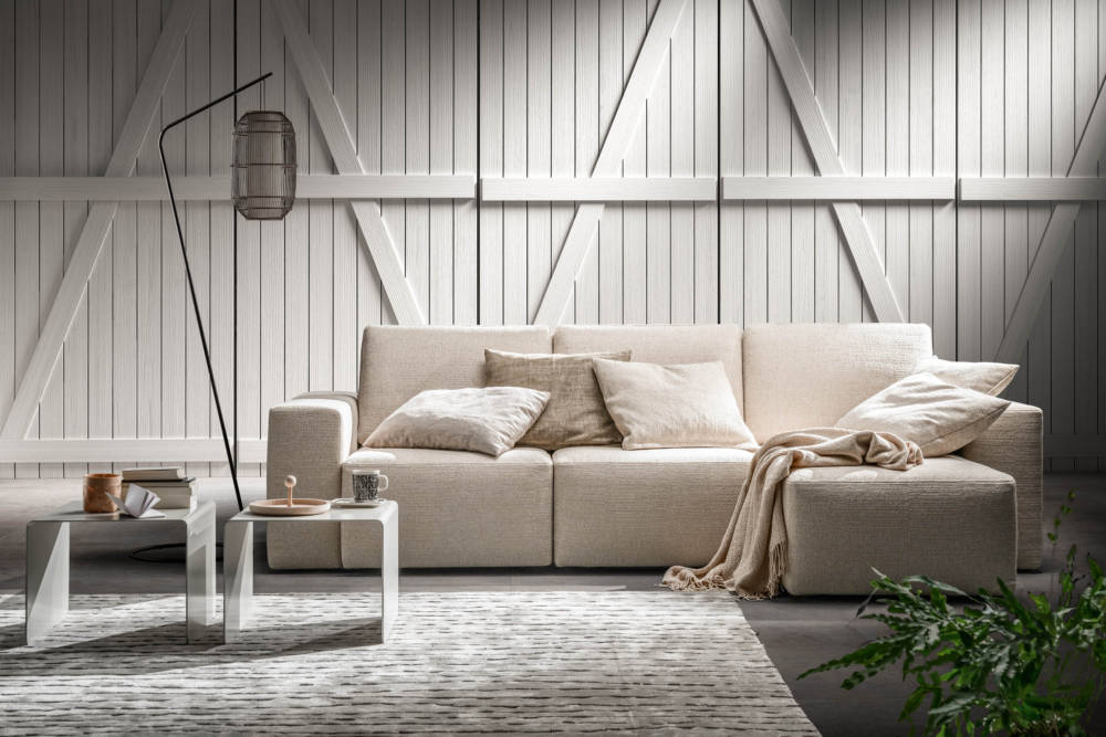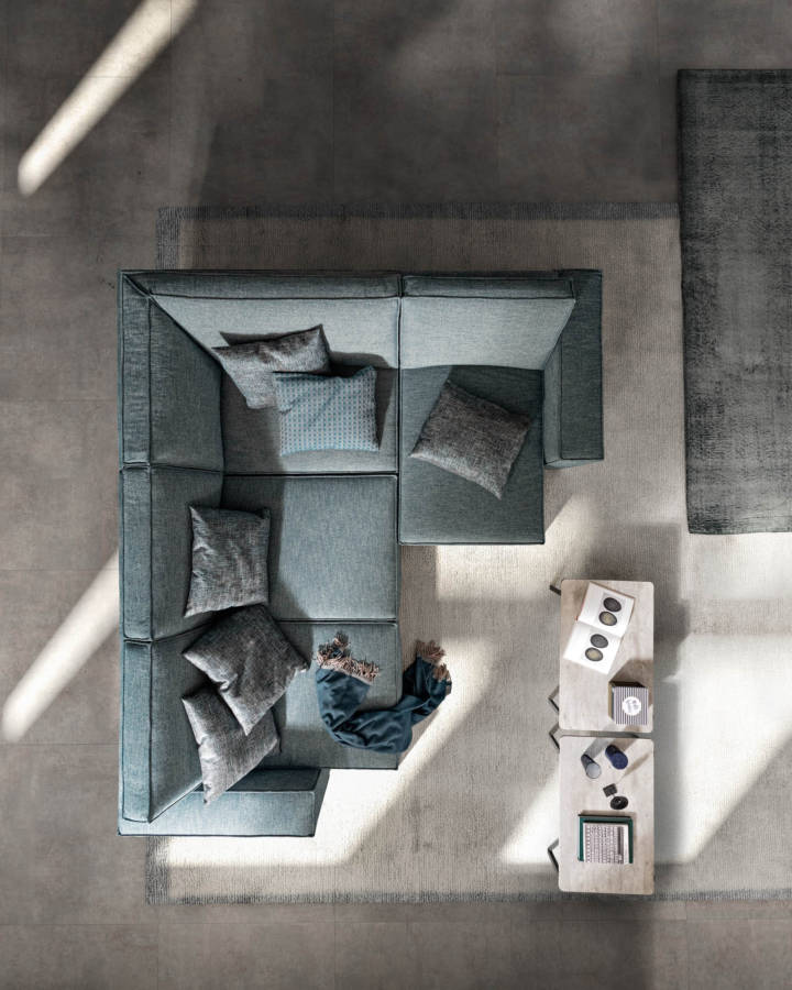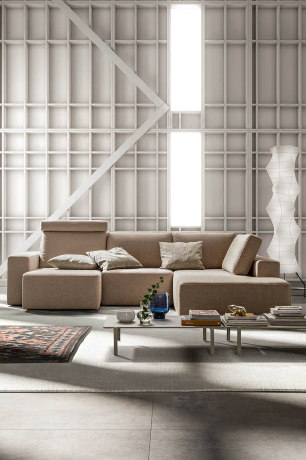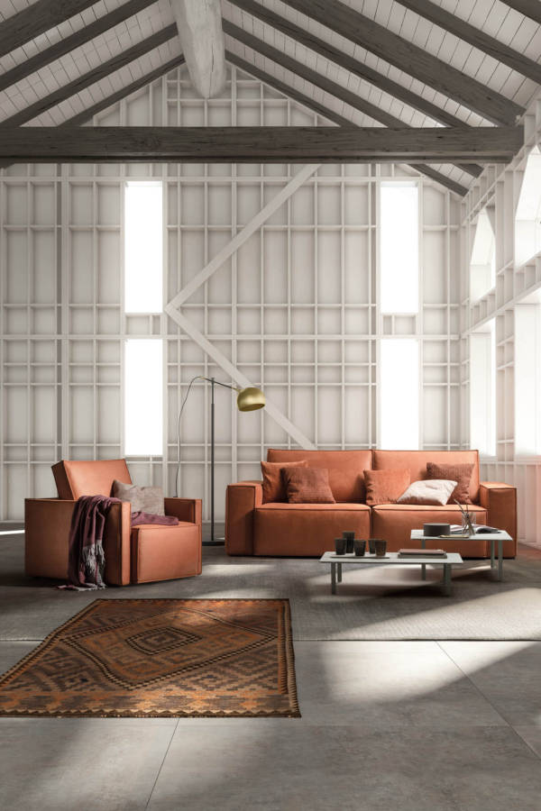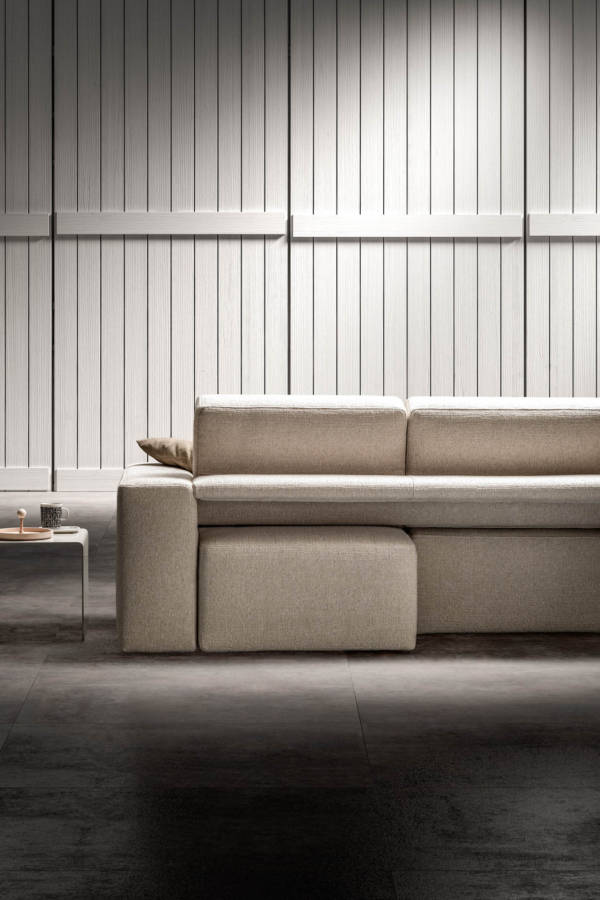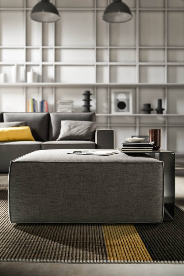 Appartenente alla Collezione Flow.Mono è un divano caratterizzato da forme rigorose che lasciano spazio alla creatività attraverso la personalizzazione delle finiture.