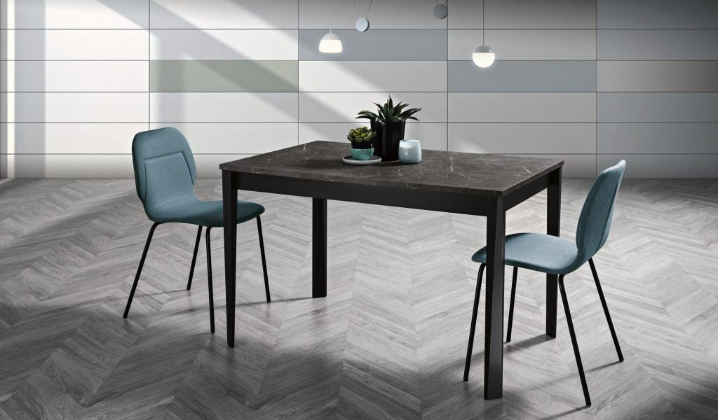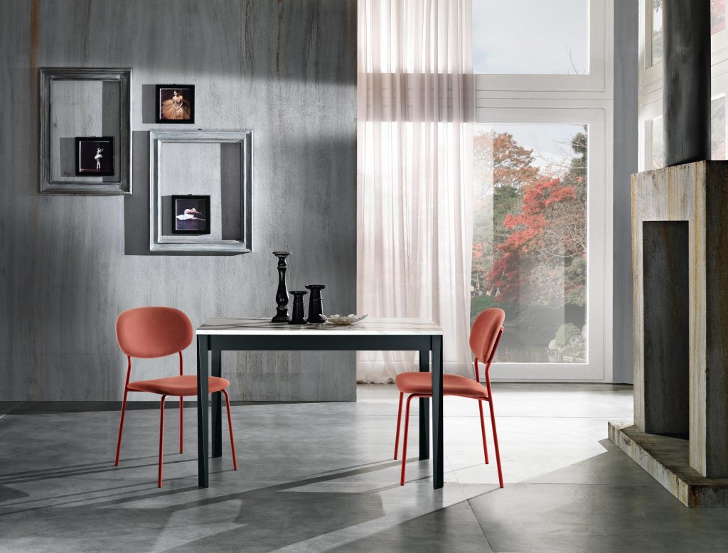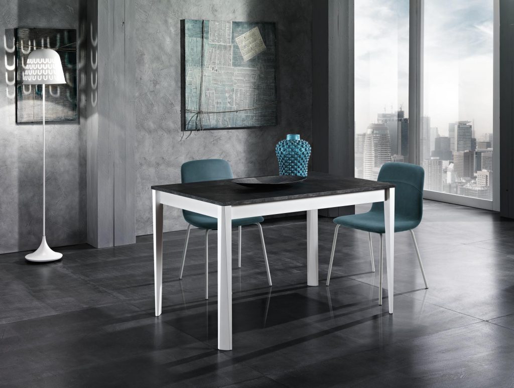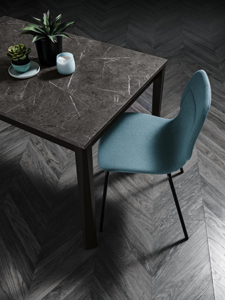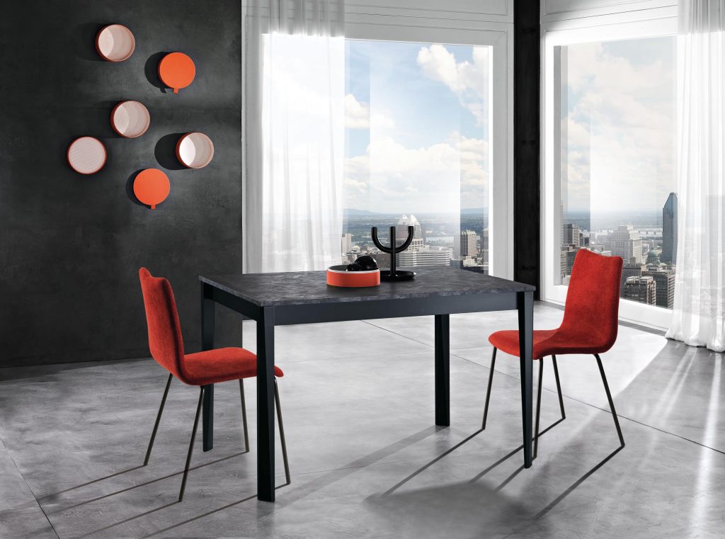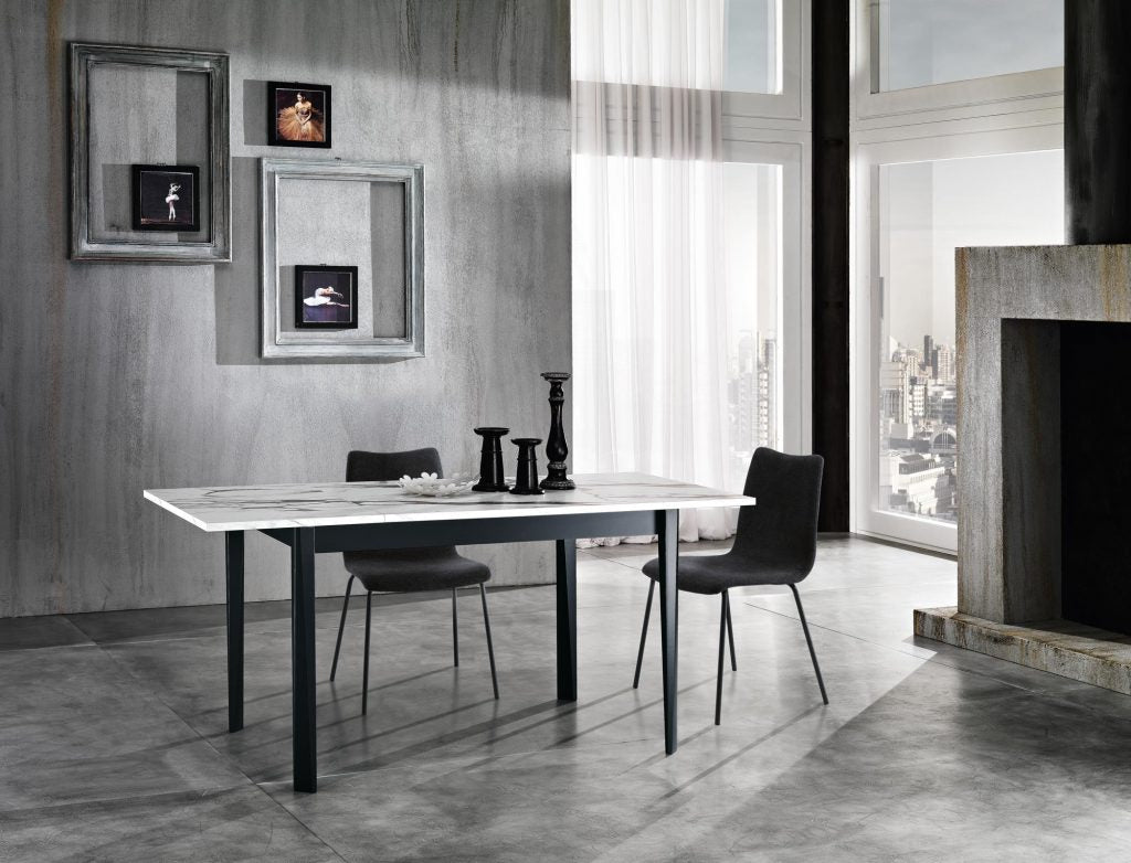 L’elegantissima gamba di design contraddistingue Otis, un tavolo adatto ad ogni ambiente, ricco di fascino. I piani in cemento antracite, calacatta e marmo grigio lo completano in abbinamento al legno verniciato antracite o bianco