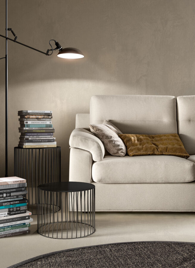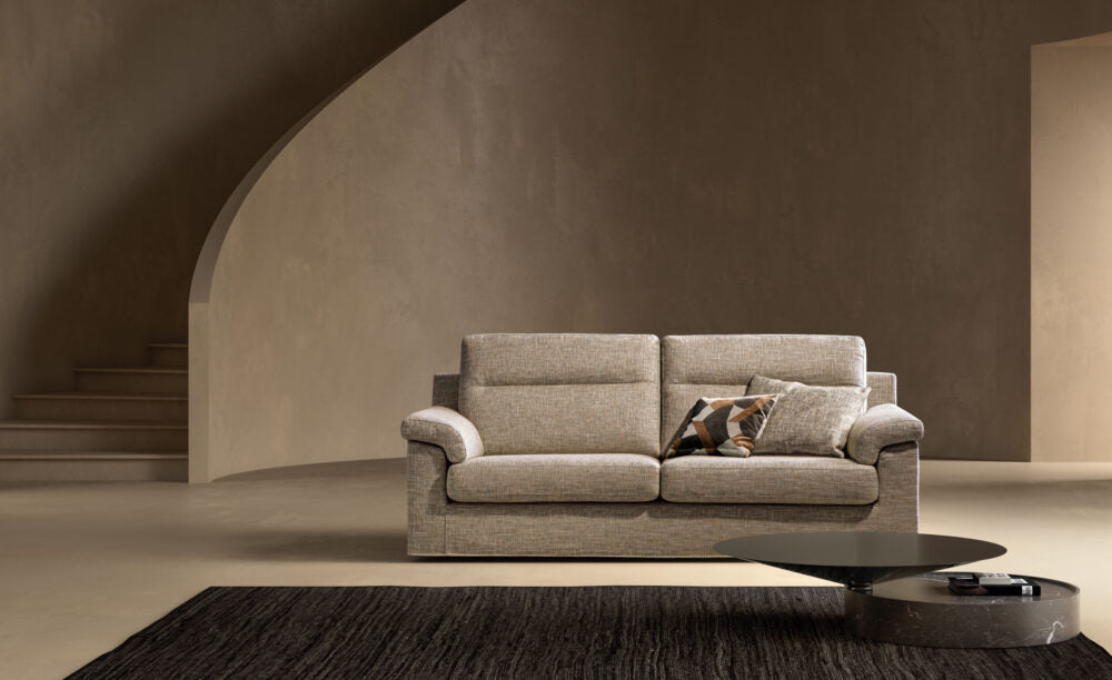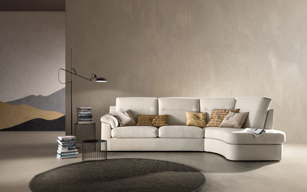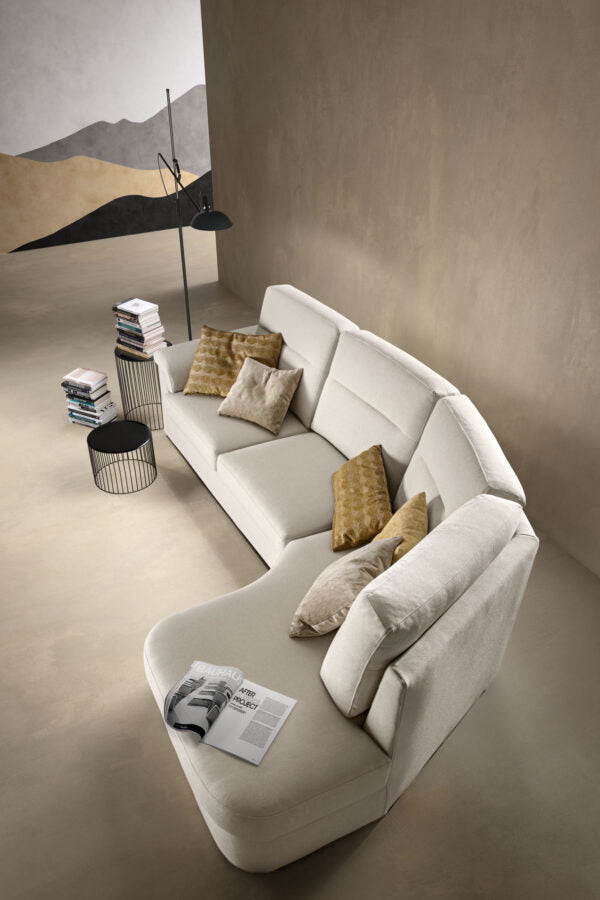 Interpretazione moderna ed attuale di una forma tradizionale di divano, dove i tratti decisi e sinuosi sono in armonia tra loro.