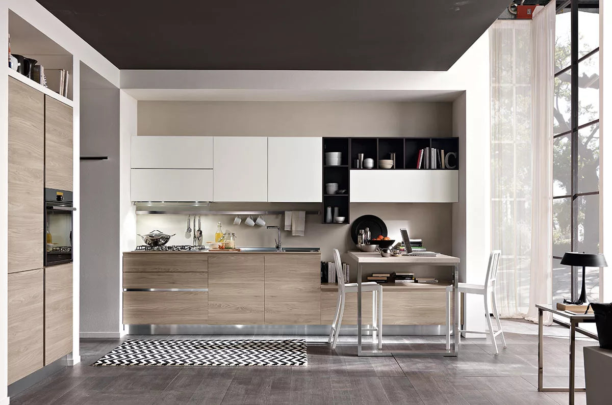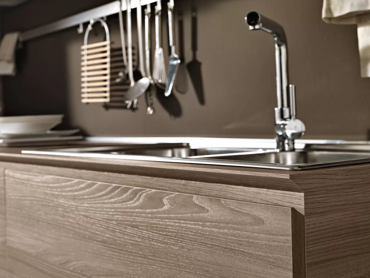 La versione Tokyo 12 esprime l’essenzialità del design minimalista in uno spazio moderno fatto di forme semplici, lineari e un open space che si adatta alle esigenze di un’ambiente attuale e ricercato. La leggerezza e la semplicità si esprimono nelle scelte cromatiche: olmo cappuccino, bianco e cioccolato nonché nei contorni delineati da finiture cromate. Tokyo non è solo cucina, ma grazie alla sua flessibilità con l’ambiente living, diventa anche spazio di convivialità per la famiglia e per gli ospiti.