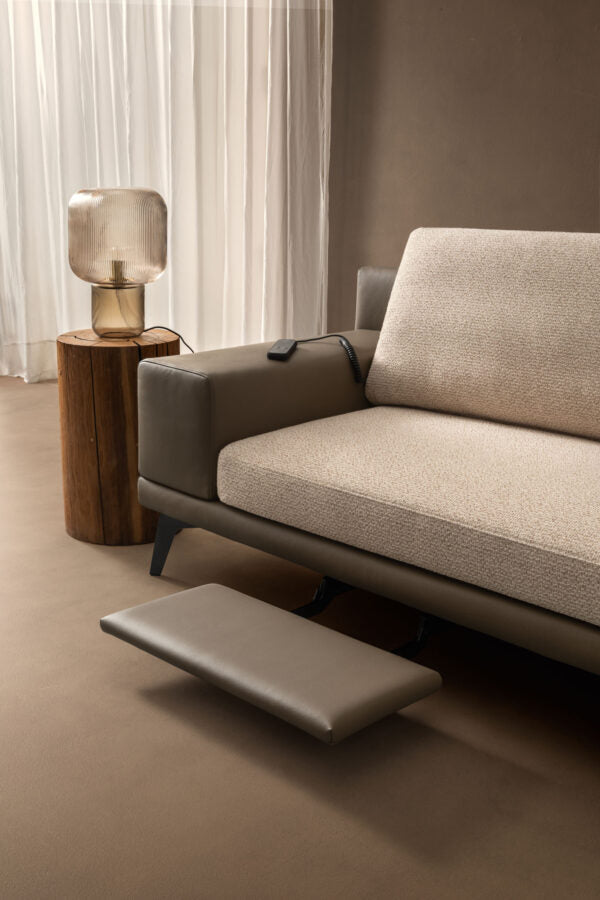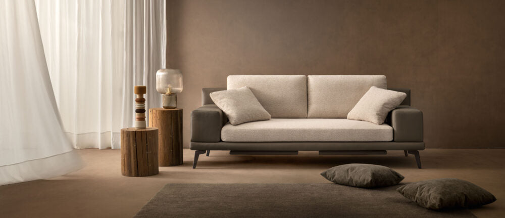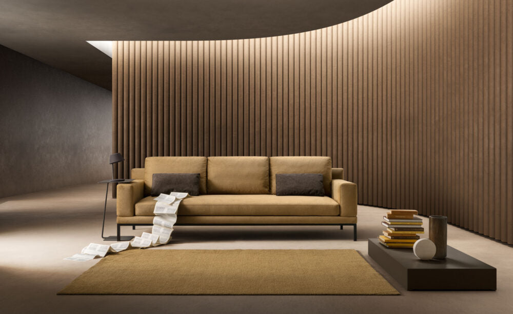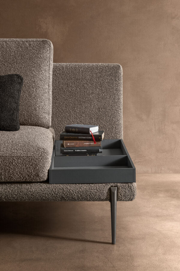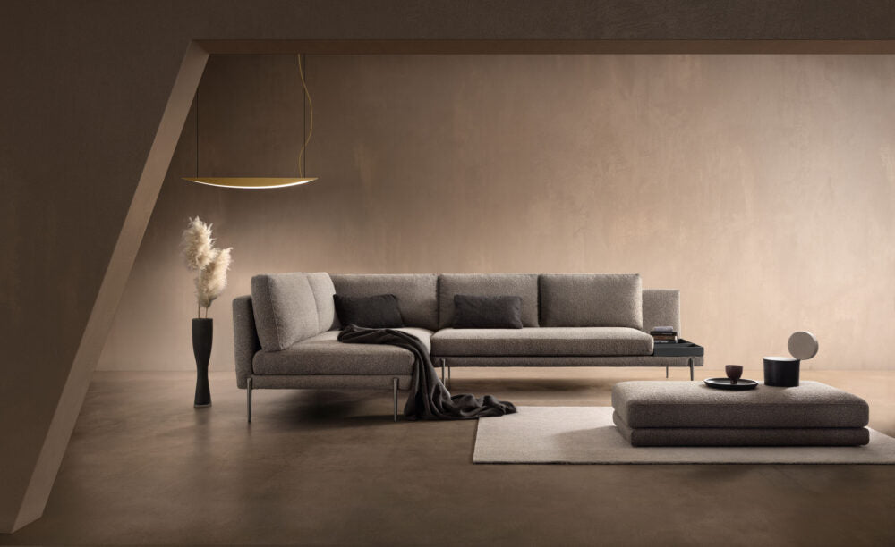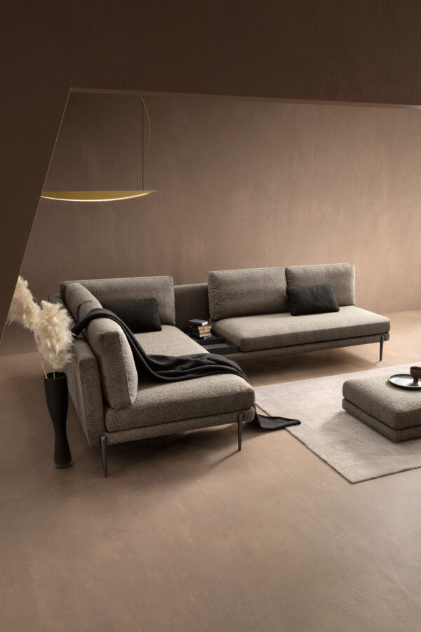 Wise, con il suo ampio programma di moduli componibili, permette di realizzare delle composizioni contemporanee ed originali. La scelta di abbinare elementi chiusi completi di bracciolo e moduli aperti o pouff, mette il divano in dialogo con la spazio abitativo in cui è inserito.